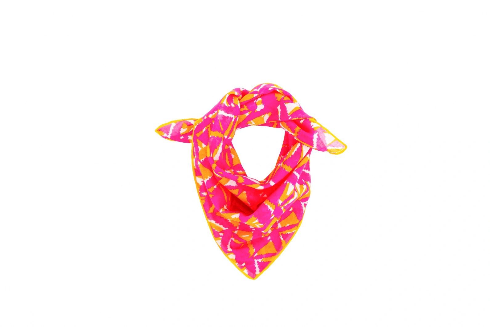 Carry the first light of the day on you. Sun Rise 50x50 cm Bandana is inspired by the warm tones of sunrise and the unique energy of nature's awakening. This design, which makes you feel the freshness of starting a tropical day with its vibrant colors, completes your summer style with its breathable , soft and silky textured cotton fabric .