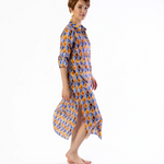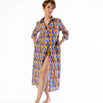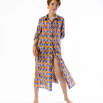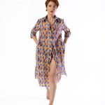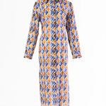 Royal Mosaic Coffee Blue Long Shirt Dress