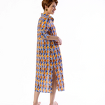 Bringing together artistic patterns and timeless elegance, the Royal Mosaic Shirt Collar Dress draws attention with its bold and sophisticated style. Its diamond-shaped geometric pattern, combined with elegant color transitions, offers an eye-catching look and completes your summer style with its breathable, soft and silky textured cotton fabric .