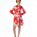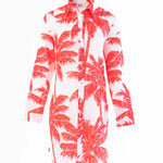 Sunset Palmiye Beyaz Kısa Gömlek Elbise
