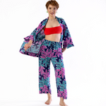 Doğanın yalın güzelliğinden ve sahil esintisinden ilham alan Shore Leaf Pantolon, minimal ve zarif tasarımıyla öne çıkıyor. Plajın huzur veren atmosferini üzerinizde taşırken, tropikal yaprak desenleriyle doğayla iç içe bir stil sunuyor. Nefes alan yumuşak ve ipeksi dokulu viskon kumaşıyla yaz stilinizi tamamlıyor.